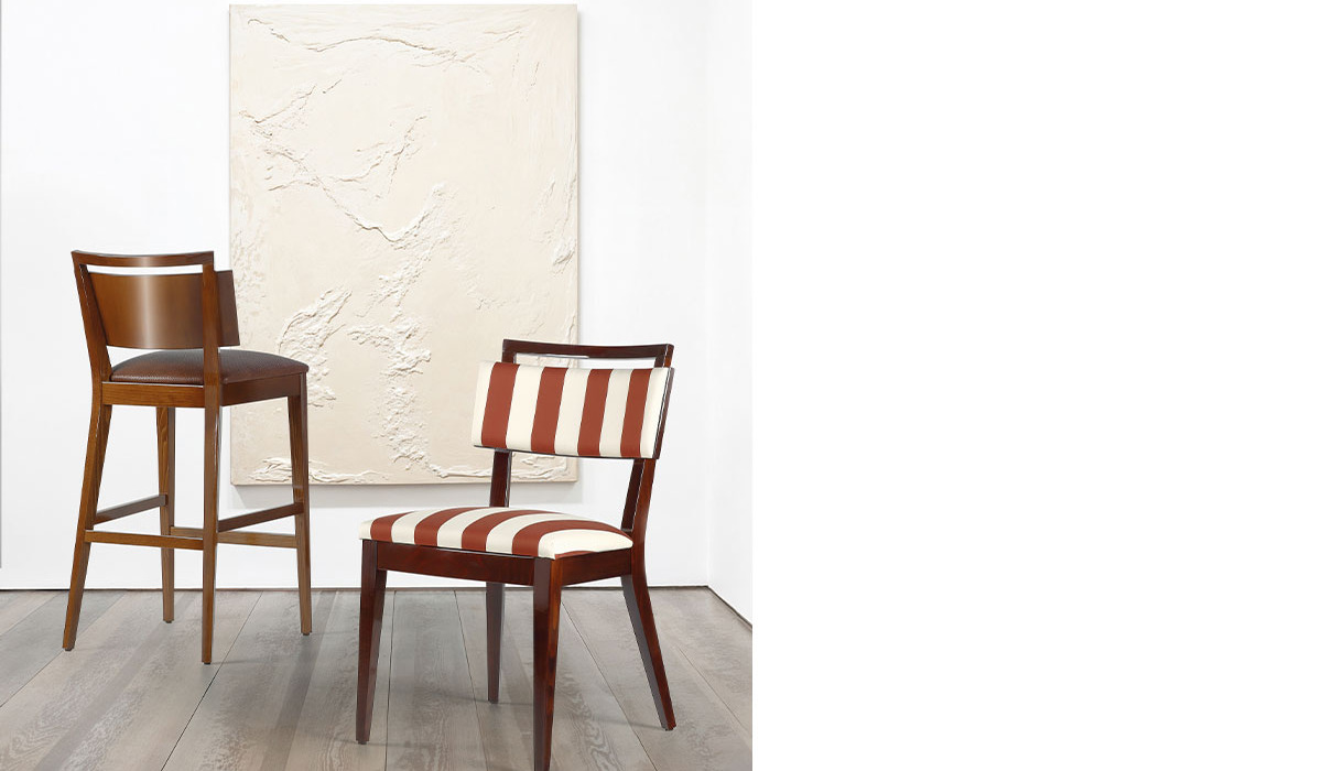 La collezione comprendente sedia, poltrona e sgabello ed ha un design che offre un'esperienza di seduta elegante e lussuosa e si integra elegantemente in qualsiasi ambiente.